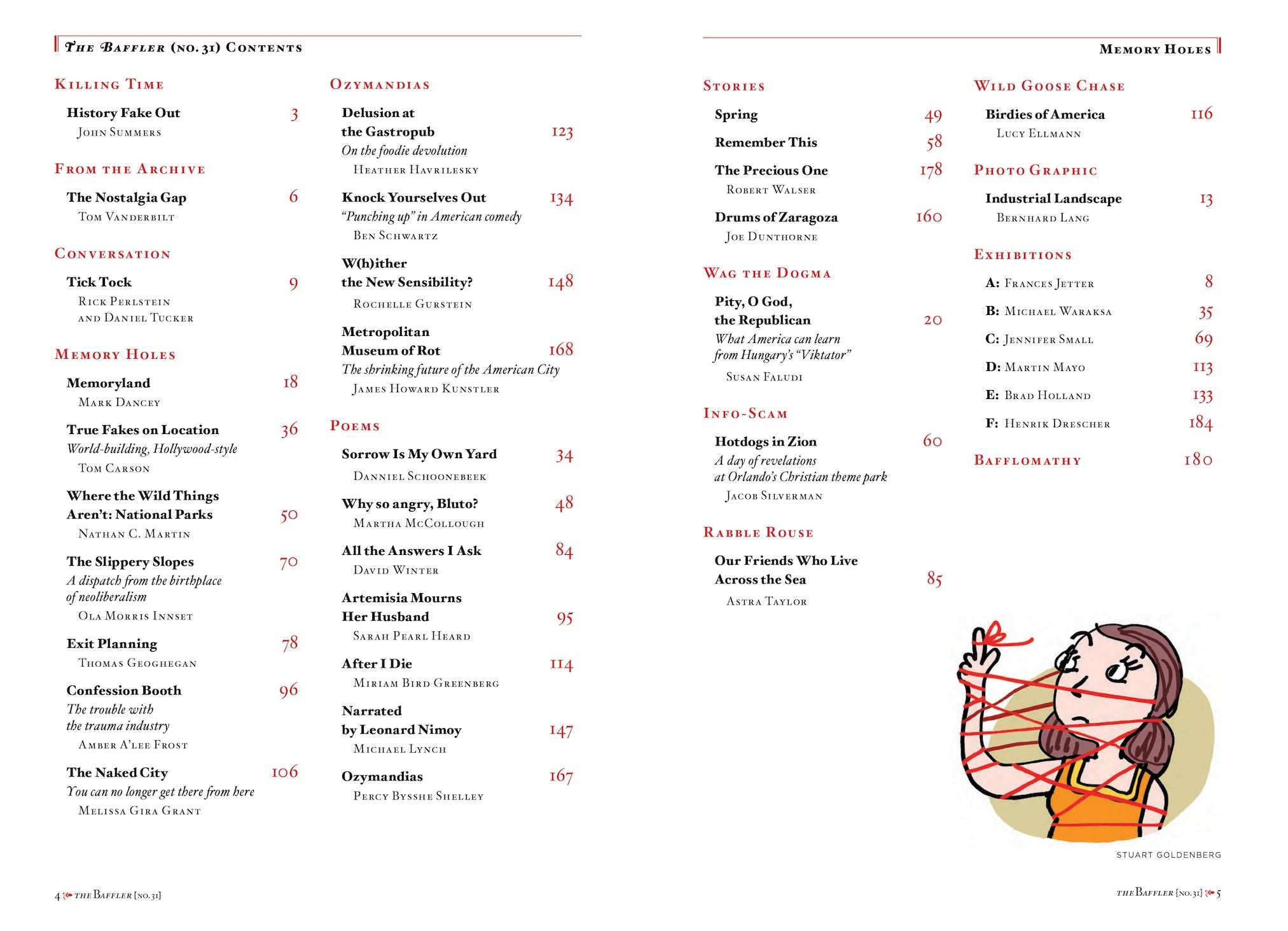 Our summer 2016 issue is “Memory Holes,” blinking urgent messages from distinctive places and imagined locations. Curious about the once and future role of architecture in effectuating social change, Jacob Silverman sets his sights on a Christian theme park in Florida; Melissa Gira Grant recalls a zone of strip clubs in Boston; Nathan Martin scopes out a fast-privatizing stretch of wilderness in Montana; Astra Taylor visits limbo; James Howard Kunstler advises you not to speculate on the declining cities of the future; and Ola Morris Innset takes the train to the Hotel du Parc in Mont Pèlerin, Switzerland—the original host site of neoliberal economics, now on its way to the ash heap, courtesy of firster, birther, and anti-free-trade fantasists.