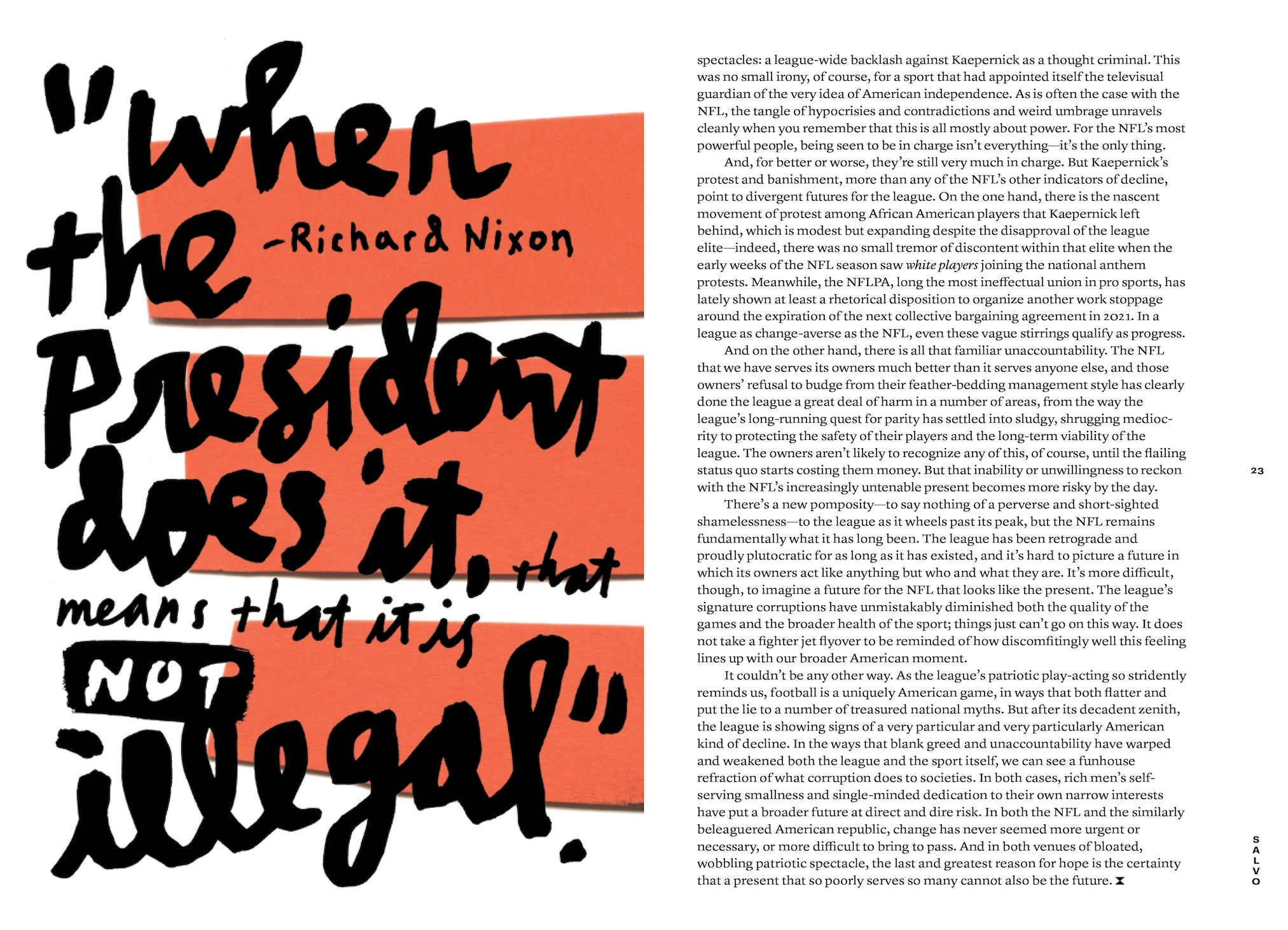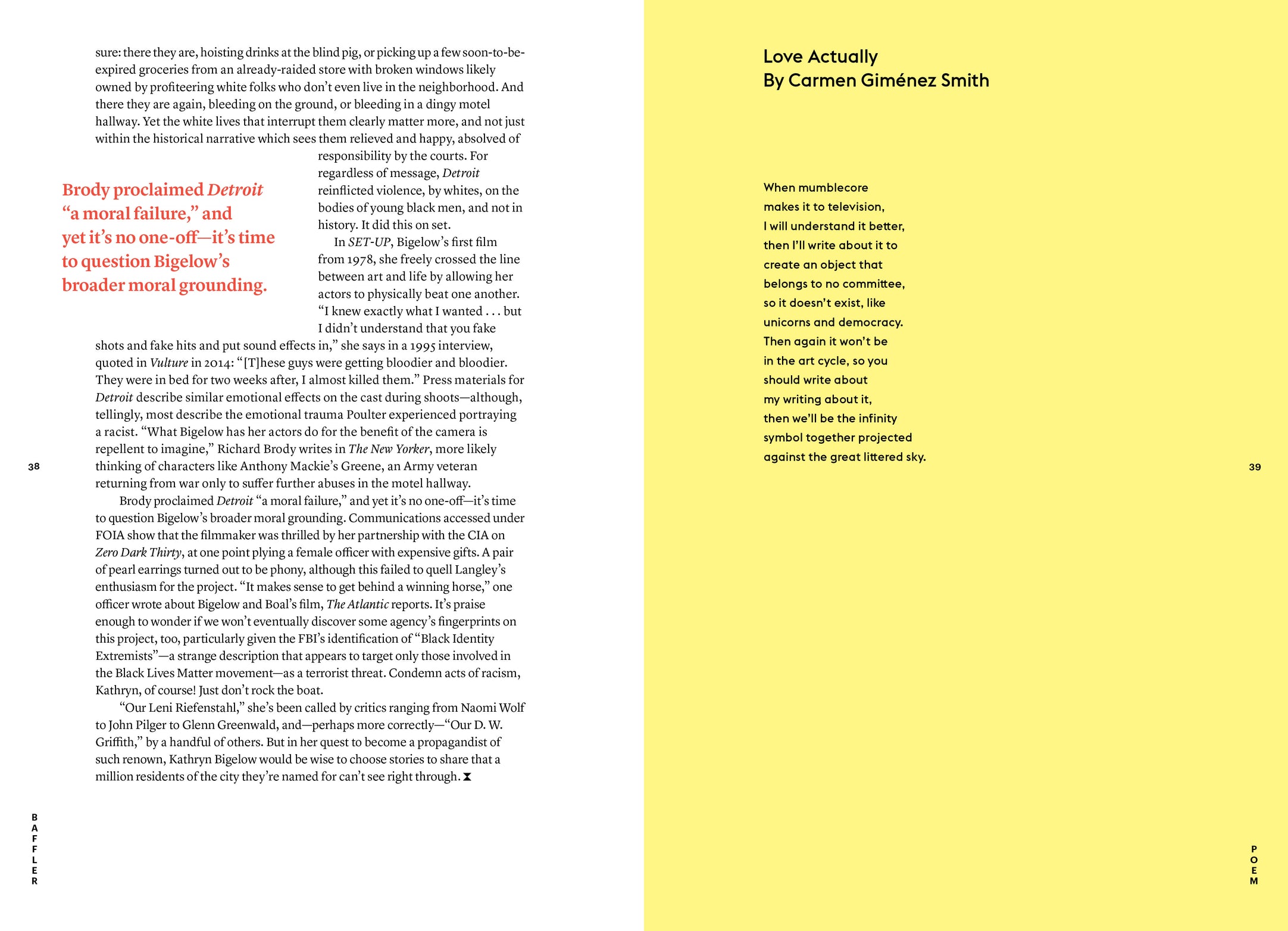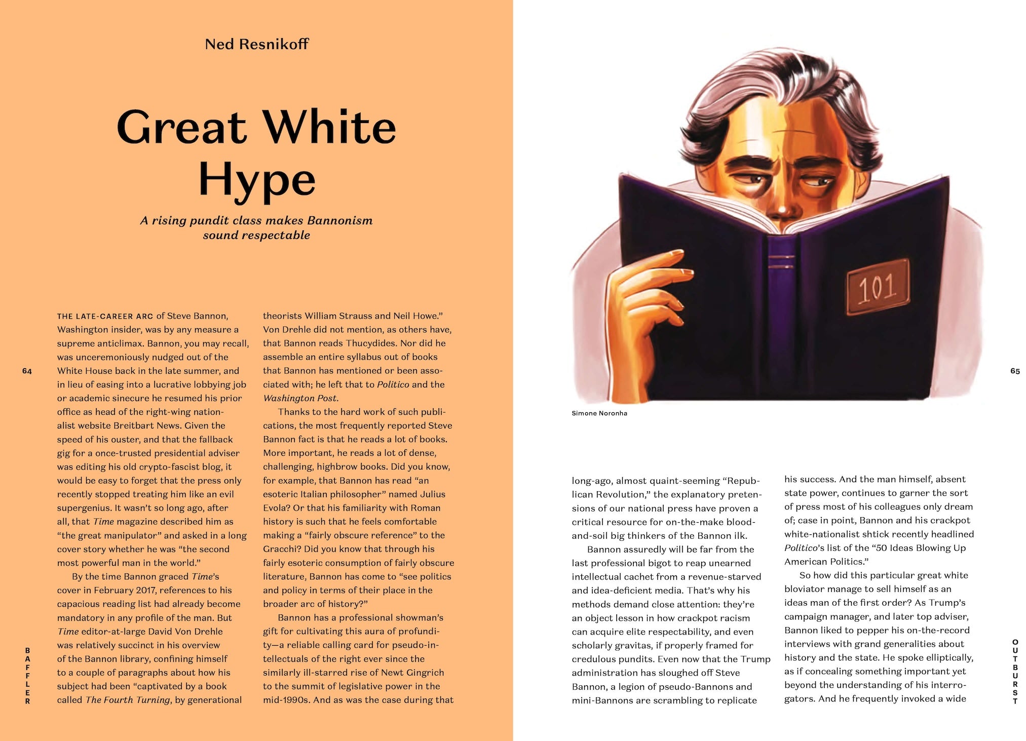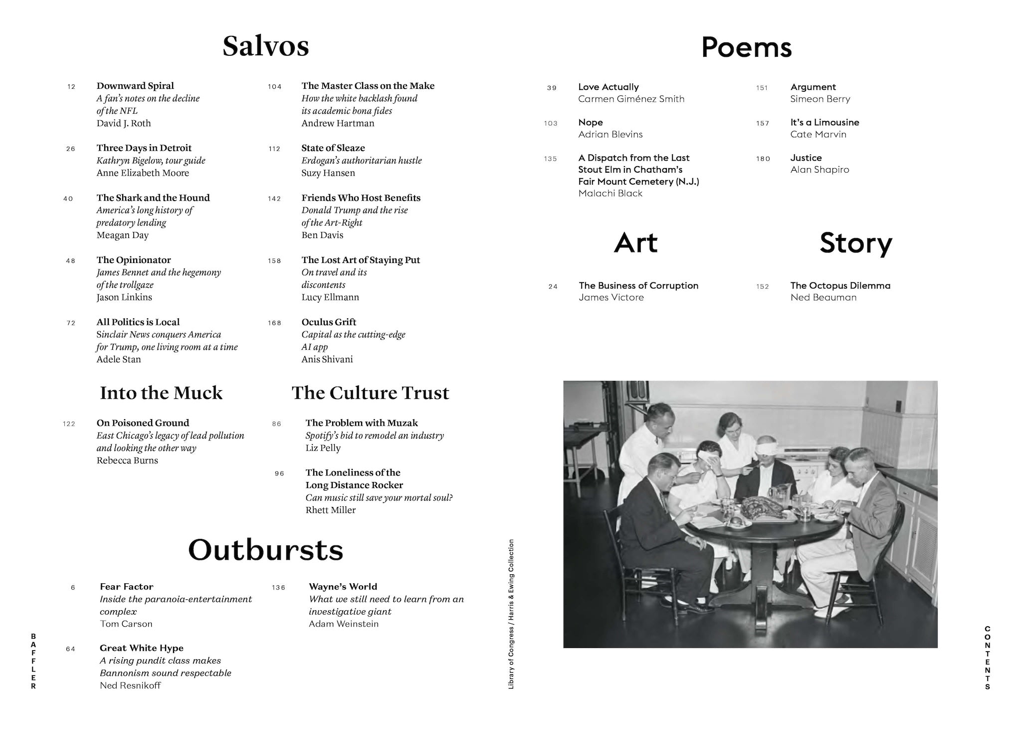 It’ll take a lot more than hashtag activism and hypocrisy callouts to displace our Gollum-in-Chief, and all he represents, from his bully pulpit. So behold Baffler No. 37, “Power, Corruption, and Lies,” which seeks to lay bare the corrupt forces that simultaneously imbue and make a systematic mockery of the American experiment. Andrew Hartman plumbs the antidemocratic dogma of public-choice theory, as it was bred in the privileged white sanctums of the American right. Adele Stan gives us a glimpse of the Sinclair Group’s monopolistic bid to strip mine the local TV news ecosystem and carpet-bomb it with advertorial content in the MAGA vein. Jason Linkins offers a bracing intellectual portrait of James Bennet, the man who fills the New York Times op-ed section with zombie delusions of sweet neoliberal reason. Meagan Day chronicles the great rolling grift of payday lending, while Ben Davis shows how the art world serves as an obliging front for Trump-era money-laundering scams. Other modes of cultural expression are likewise descending into ossified, moneyed formalism—from the Spotified-and-abandoned music scene, as anatomized in separate accounts by Liz Pelly and Rhett Miller, to the surveillance-addled state of our movie screens and TV streams, per Tom Carson’s suitably rattled survey.