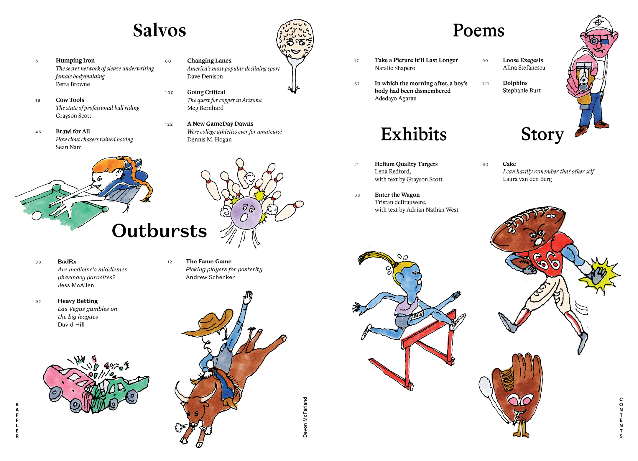 Other athletes watch as once quintessentially American pastimes experience a downturn. Dennis M. Hogan contemplates whether college sports are too dependent on exploitation to survive paying players. Dave Denison wonders how long the change-resistant sport of bowling can endure the vulture capitalists buying up alleys around the country. Petra Browne details the challenges faced by female bodybuilders long after their 1980s heyday, competitors reliant now on muscle-worshipping groupies to bankroll their costs—inclusive of the steroids necessary to compete at the highest levels. Andrew Schenker considers the complicated questions faced by halls of fame, like whether a separate wing should exist for the dopers and cheaters.