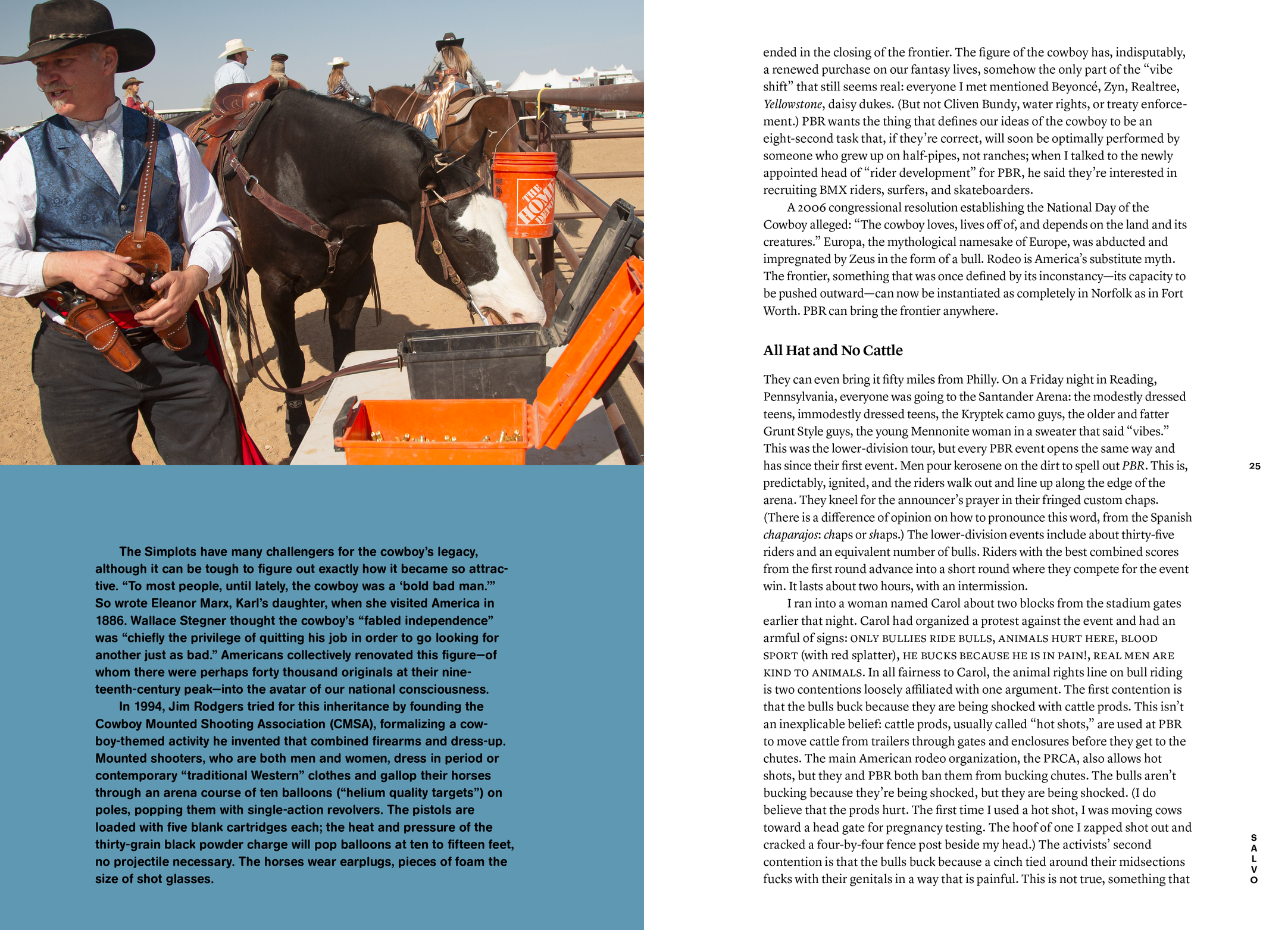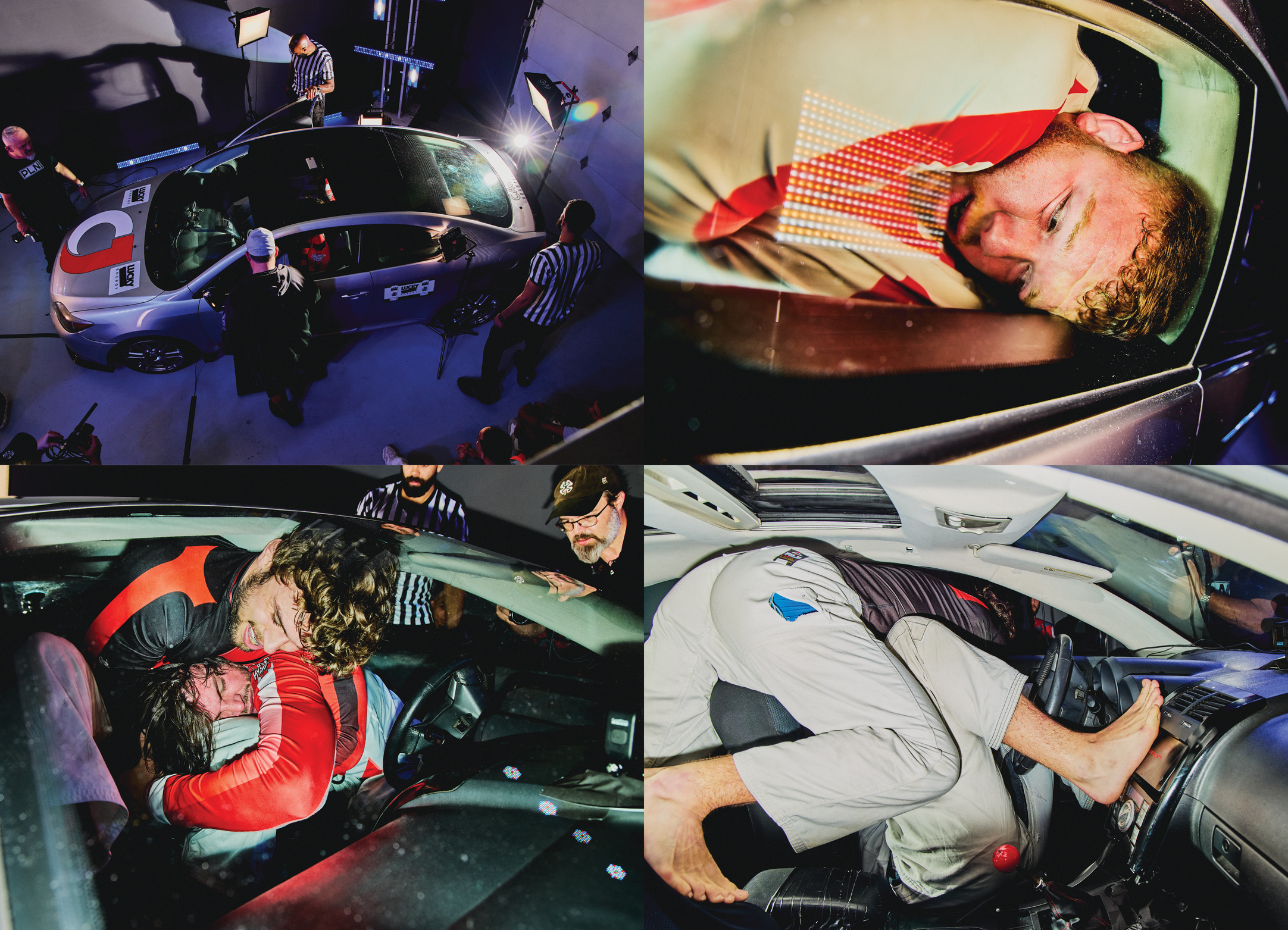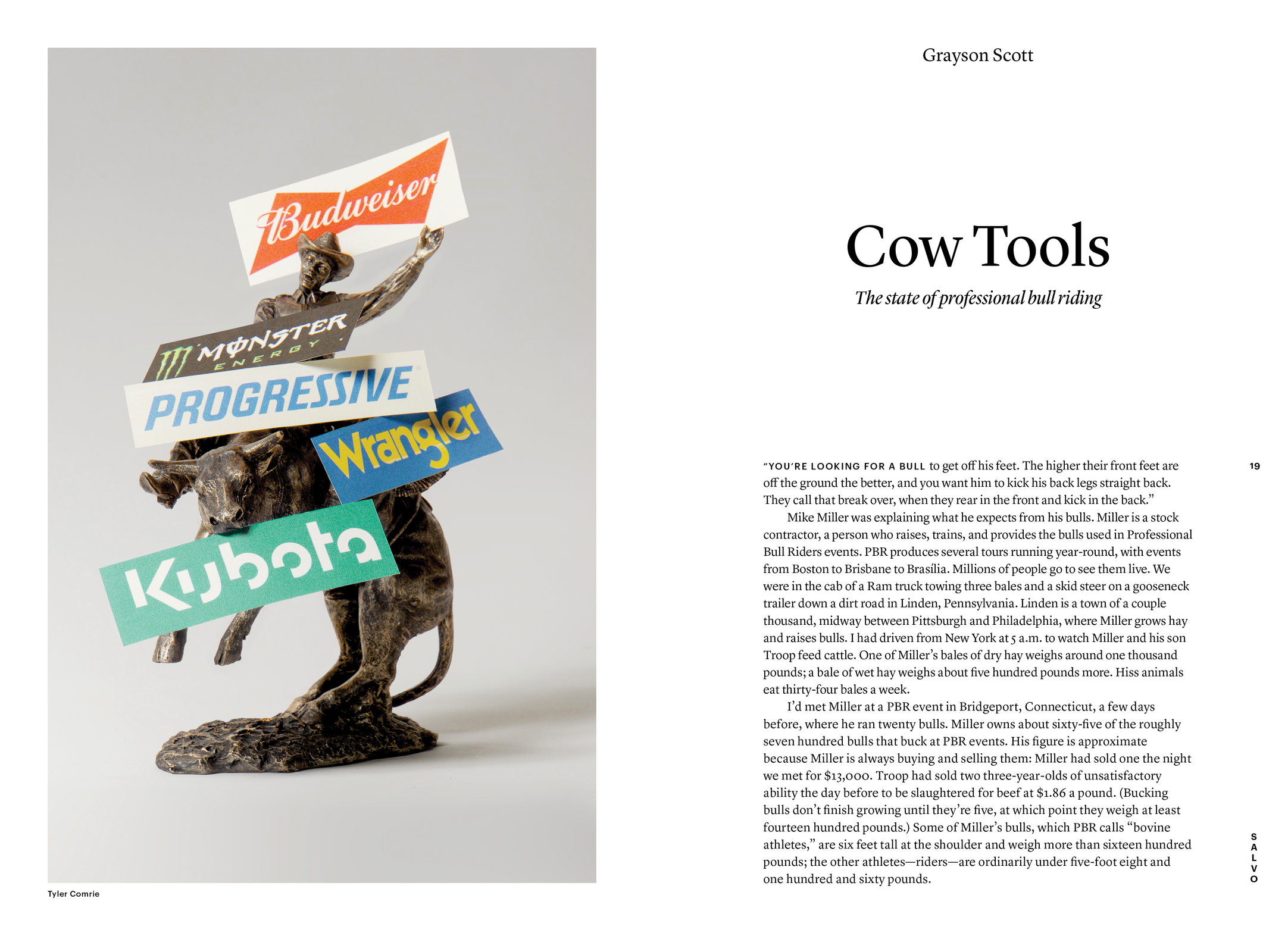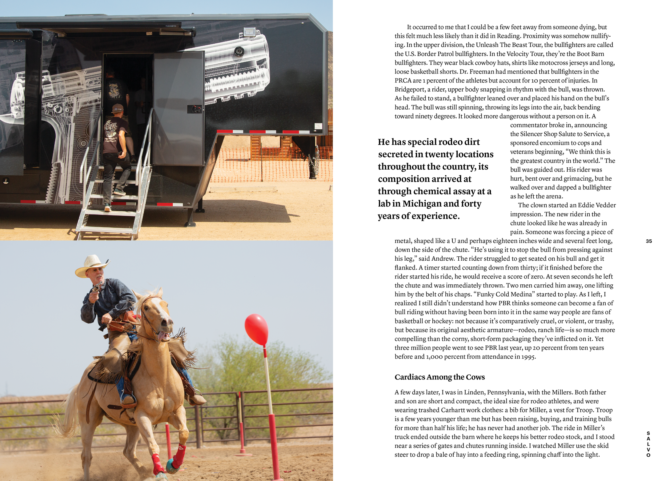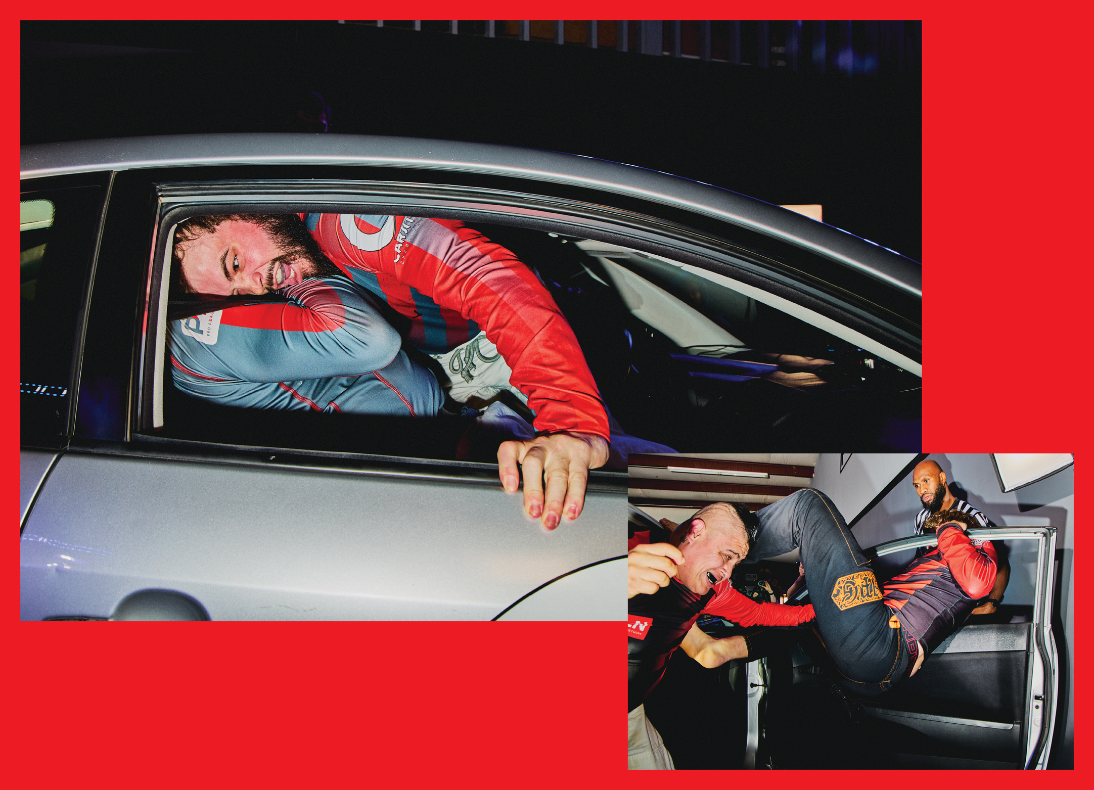 “Player Haters” surveys the state of competition in Fortress America, where the only flourishing industries are sports betting and YouTube. The latter’s vloggers have embraced the country’s masculinist turn: fewer suicide forest pranks and tiny-mic’d street interviews, more beating the shit out of each other. Sean Nam demonstrates how influencers took over the dying sport of boxing, selling sloppy bouts to an uneducated audience while decrepit and corrupt regulatory bodies played blind and profited big. Elsewhere in violence, mixed-martial-arts moguls TKO Group Holdings, Inc. have diversified, now proffering Professional Bull Riders, a multimillion-dollar novelty league that sells highlight reels of bovine-on-man accidents and the Western frontier as not a place but a vibe, per Grayson Scott, easily accessible everywhere given this nation’s omnipresent fears of invasion. Country-fried LARPing continues in Lena Redford’s exhibit of cowboy mounted shooting, while Tristan deBrauwere’s photos of CarJitsu—i.e., jiujitsu in a car—depict another breed of vehicle-based brutality. No one has choked out a Formula 1 driver at 230 miles per hour, but perhaps one of the citizens of Las Vegas might chance it, aggrieved, as David Hill shows, by the city’s many capitulations to the racing league.