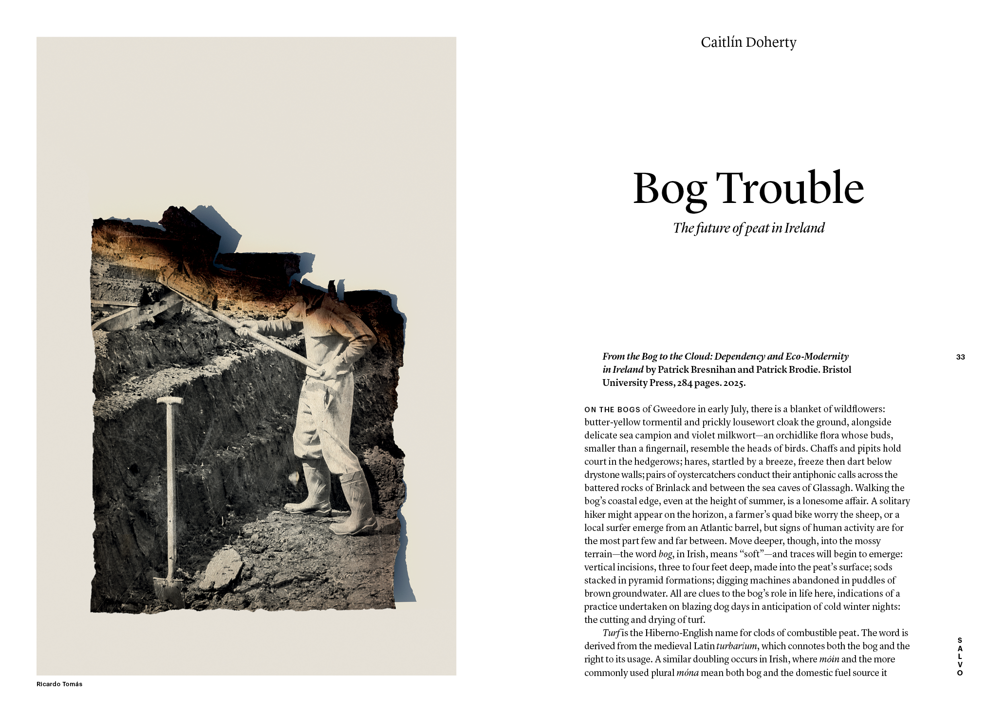Elsewhere in domestication, ears of corn lament their toxic codependency with man in Anelise Chen’s short story, which provides a series of telepathic confessions from crops. We’re not so great at intraspecies cooperation, as history tells us: Scott W. Stern winds the clock back to the 1972 UN Conference on the Human Environment to show that international environmental law was dead on arrival, its utopic vision hamstrung by wealthy industrialists and the United States’ insistence on a unipolar world. A similar fate has befallen the Biden administration’s attempts at fighting climate change, with Trump rolling back fuel economy standards and decimating the Environmental Protection Agency. (Trump’s second term has seen many such attacks: Kristen Martin writes on the federal government’s current assault on Native sovereignty.) Biden’s technocratic efforts, however, excluded needed voices—e.g., the poor, the non-white—as Rhiana Gunn-Wright and Maria Lopez-Nuñez explain in their conversation with Dave Denison. In Ireland, as Caitlín Doherty writes, a preference for peat, that traditional (and cheap) source of fuel, is overridden by a Green Party more concerned with household emissions than poverty.