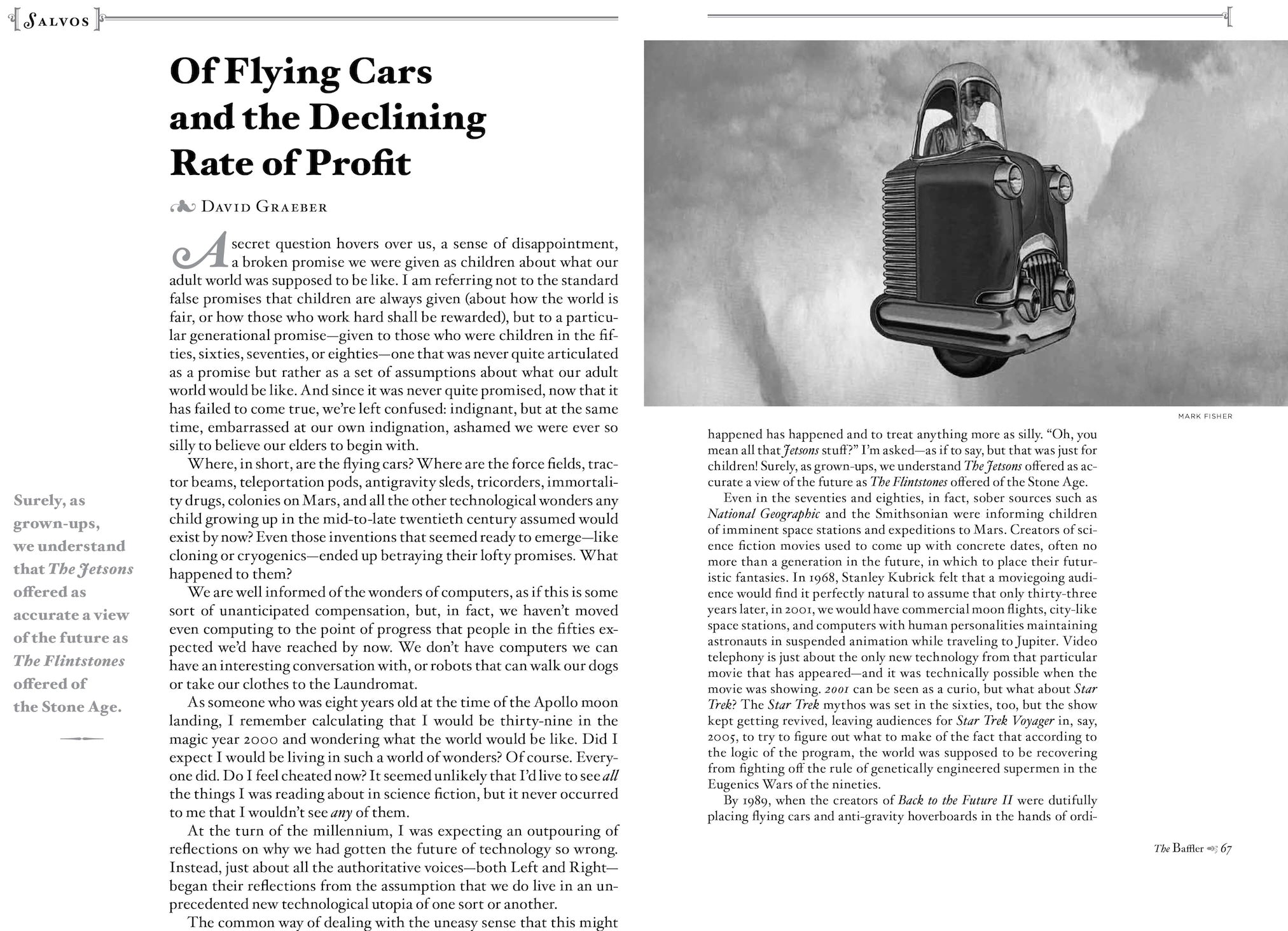 Who could have guessed that this flying car, a symbol for the tech-induced stagnation we investigated in this issue, first graced the cover of a Soviet youth magazine? Well, this issue marked the first assembled by the mag’s new crew: John Summers, Chris Lehmann, Patrick Flynn, Lindsey Gilbert. What have they done?