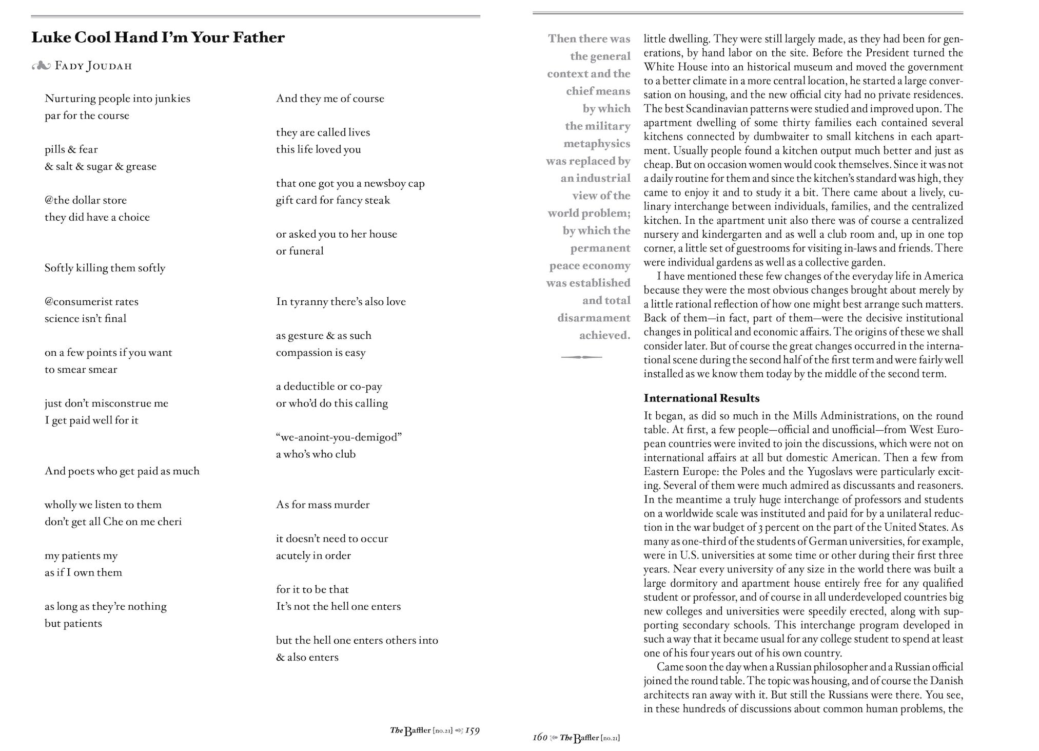 The issue delivers original writing on politics, culture, and media by Will Boisvert, Ana Marie Cox, Barbara Ehrenreich, Belén Fernández, Chris Lehmann, Jason Linkins, Josh MacPhee, Jim Newell, Alex Pareene, Dubravka Ugrešić, and Eugenia Williamson—plus stories, poems, and graphic art by some of the best writers, poets, and illustrators around. And finally, we bring you a previously unpublished waking dream by C. Wright Mills, “If I Were President.” Well, what would you do if you were president?