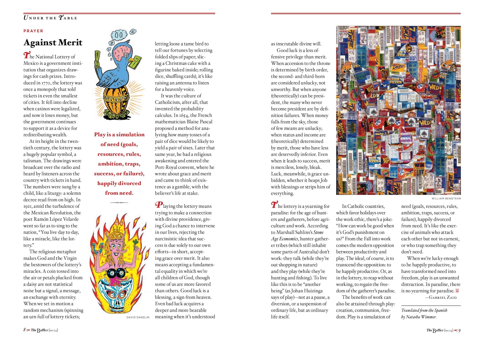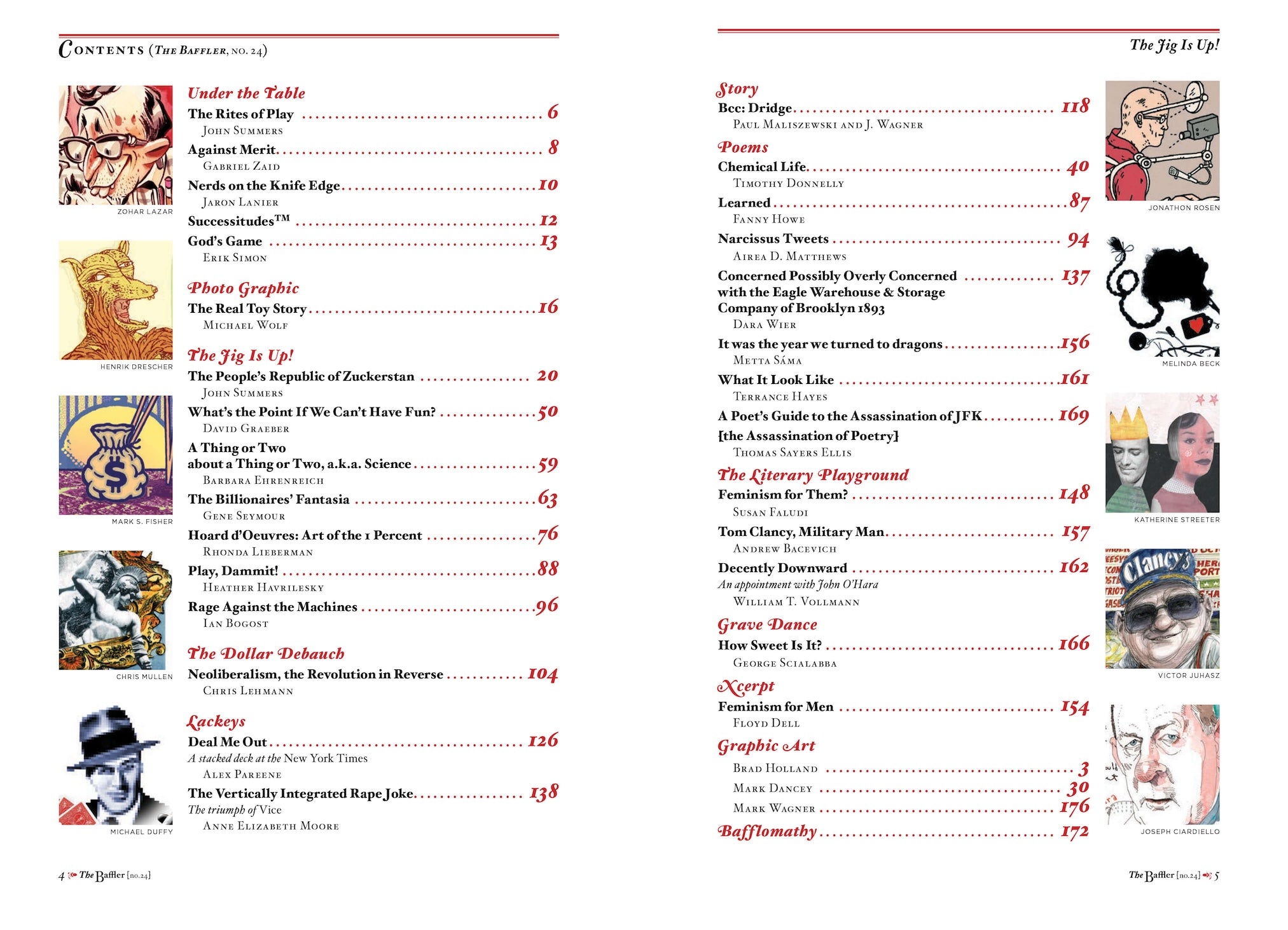 And that’s only the half of it. Look here for head-spinning salvos by Chris Lehmann, Susan Faludi, William T. Vollmann, George Scialabba, and Heather Havrilesky on history, politics, feminism, and literature. Anne Elizabeth Moore makes sport of Vice magazine. Alex Pareene practices journalism on the New York Times’ DealBook. Fiction by Paul Maliszewski and J. Wagner; short prose by Jaron Lanier, Gabriel Zaid, and Erik Simon; poetry by Thomas Sayers Ellis; and hilarious graphic art by Brad Holland, Mark Dancey, and David McLimans, who gave us the cover. Not to win or lose the game, but to be free of the system of winners and losers—that’s the spirit.