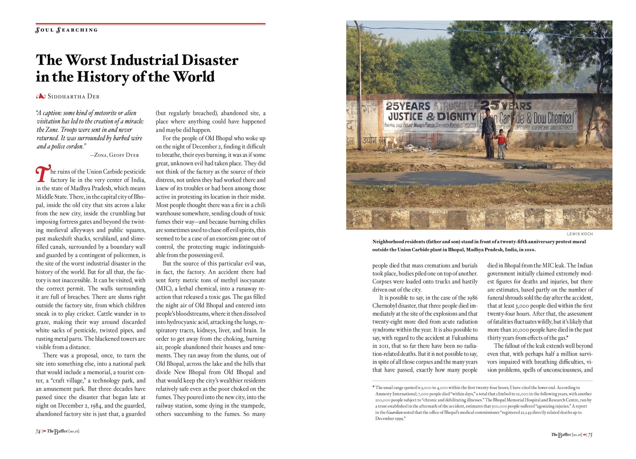 As for undigested collective traumas, both those America has inflicted and those it has suffered, we have them covered too. Here’s a field report on occupational health and safety among workers at New York University’s campus in the United Arab Emirates by Andrew Ross, on the profits of American war nostalgia here at home by Andrew J. Bacevich, and a piece by Siddhartha Deb on life in Bhopal, India, after the worst industrial disaster in the history of the world.