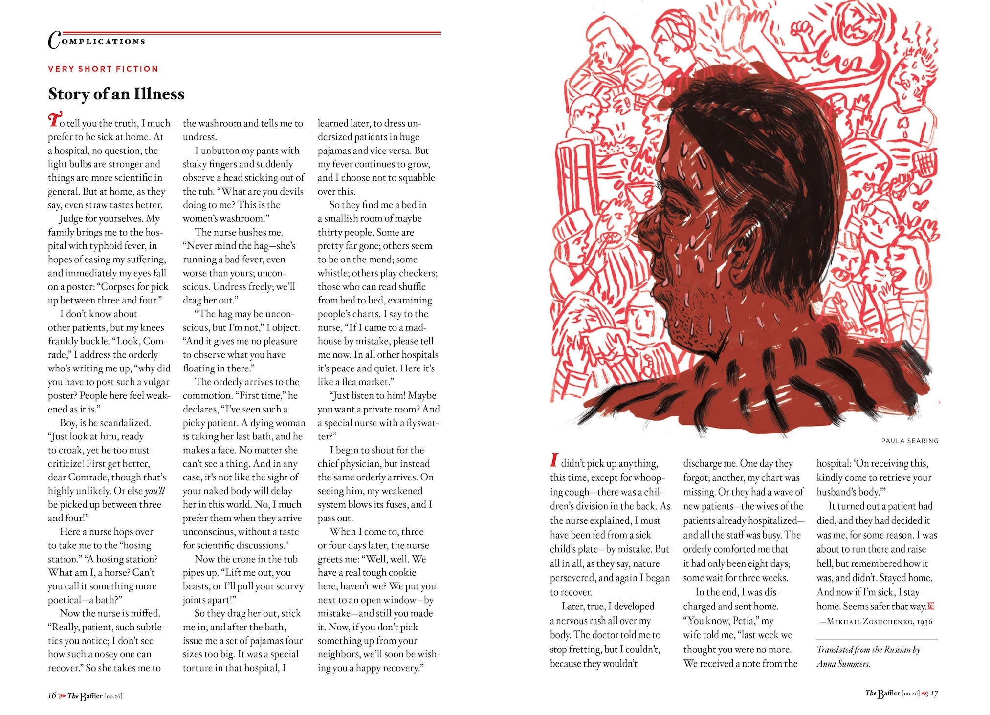 Feeling amnesiatic? We can prescribe some archives and excerpts from Lisa Dierbeck and Paul Goodman. We’ve also got on offer some fiction by Mikhail Zoshchenko and Paul Maliszewski and J. Wagner, and poetry by Mario Alejandro Ariza, Debora Kuan, Jill McDonough, and Afaa Michael Weaver. Finally, visual art by Brad Holland, Ralph Steadman, Mark Dancey, Shawn Huckins, and Stephen Kroniger will help cure what ails you—well, for a while at least.