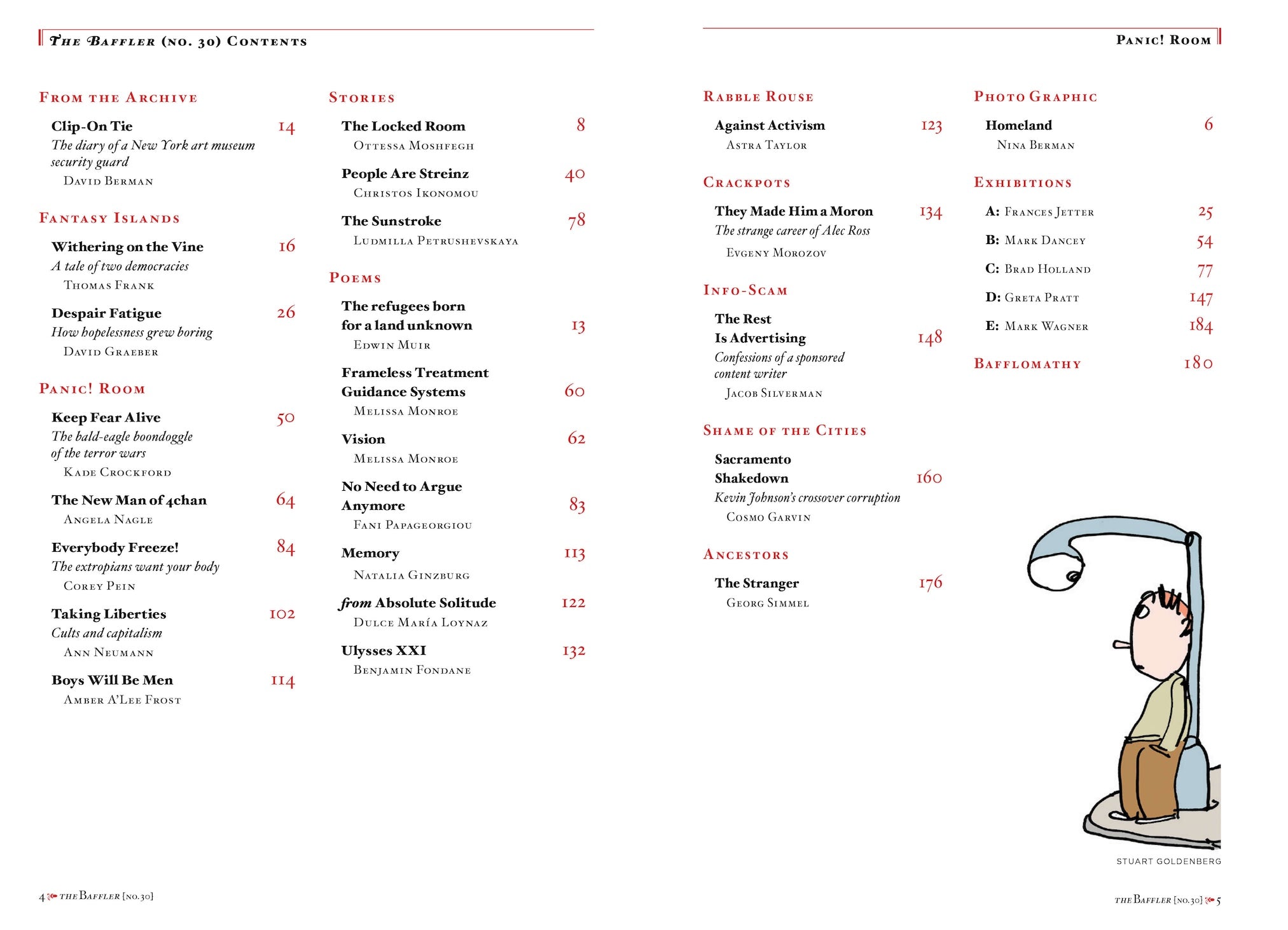 Scapegoating, xenophobia, and demagogic posturing afflict our body politic, especially in a presidential campaign year. But as fear brews in our culture, there are other ailments too. Please hold our hand as Angela Nagle takes the temperature of the sex hysteria within the 4chan Internet enclave, Corey Pein examines the craze for cryonics, David Graeber diagnoses “despair fatigue” in austerity Britain, Kade Crockford nurses the terminally sick idea of a free and peaceful country, Cosmo Garvin scans the municipal corruption in California’s state capital, and Tom Frank holidays in Martha’s Vineyard.