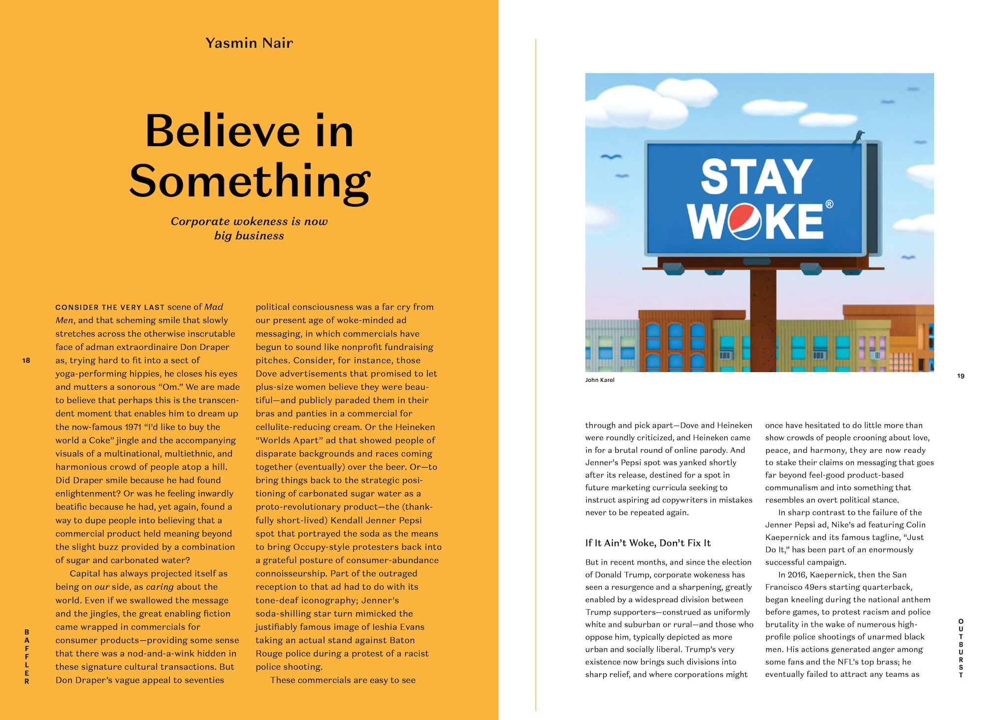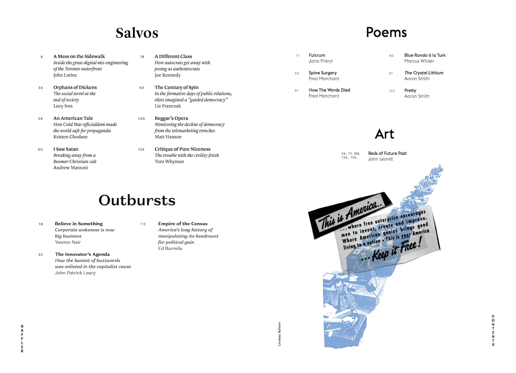 John Patrick Leary explains the rise of that favorite Baffler bugbear, innovation, and John Lorinc delineates its deleterious effect on the Toronto waterfront district that Google’s “smart cities” project, Sidewalk Labs, has turned into “a giant real-world Petri dish in which the company can work out glitches and concoct a new business model.” Liz Franczak recounts the story of Edward Bernays, who “pioneered the field of modern public relations after serving under Woodrow Wilson during World War I, overseeing propaganda initiatives aimed at selling the war to the public and maximizing recruiting efforts.” Yasmin Nair tracks that grift into the present age of woke-minded ad campaigns, “in which commercials have begun to sound like nonprofit fundraising pitches,” while Matt Hanson chronicles his time in the trenches and on the phonelines of the political telemarketing industry.