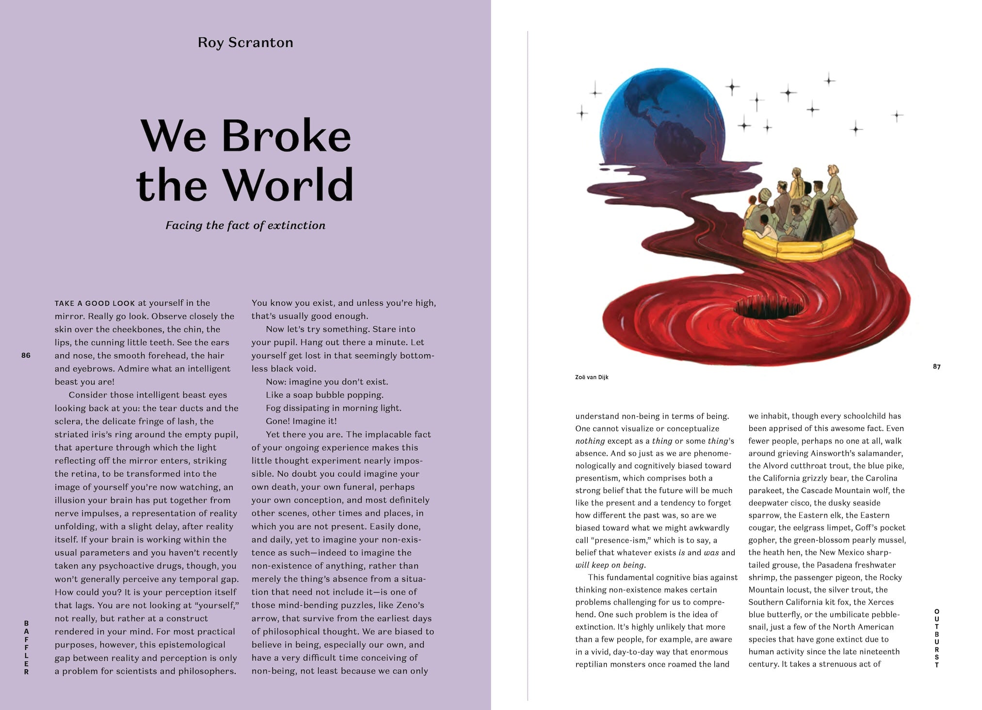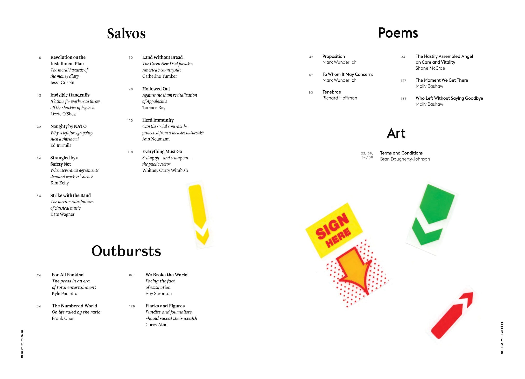 There’s also the matter of our contract with survival. Catherine Tumber scours the Green New Deal and finds it wanting in at least one respect: amid “the American-style panic” caused by climate change, she writes, we’ve forgotten to bulwark ourselves against the land-grabbers, whose fervor for sprawl will make certain that we have nowhere to grow food. And finally, in reckoning with the Intergovernmental Science-Policy Platform on Biodiversity and Ecosystem Service’s 2019 report on mass extinction, Roy Scranton invites us to enter a contract with oblivion. The planet will survive, but we’re set to eliminate all that keeps us alive. If you’re feeling nervous, just sign on the bottom line.