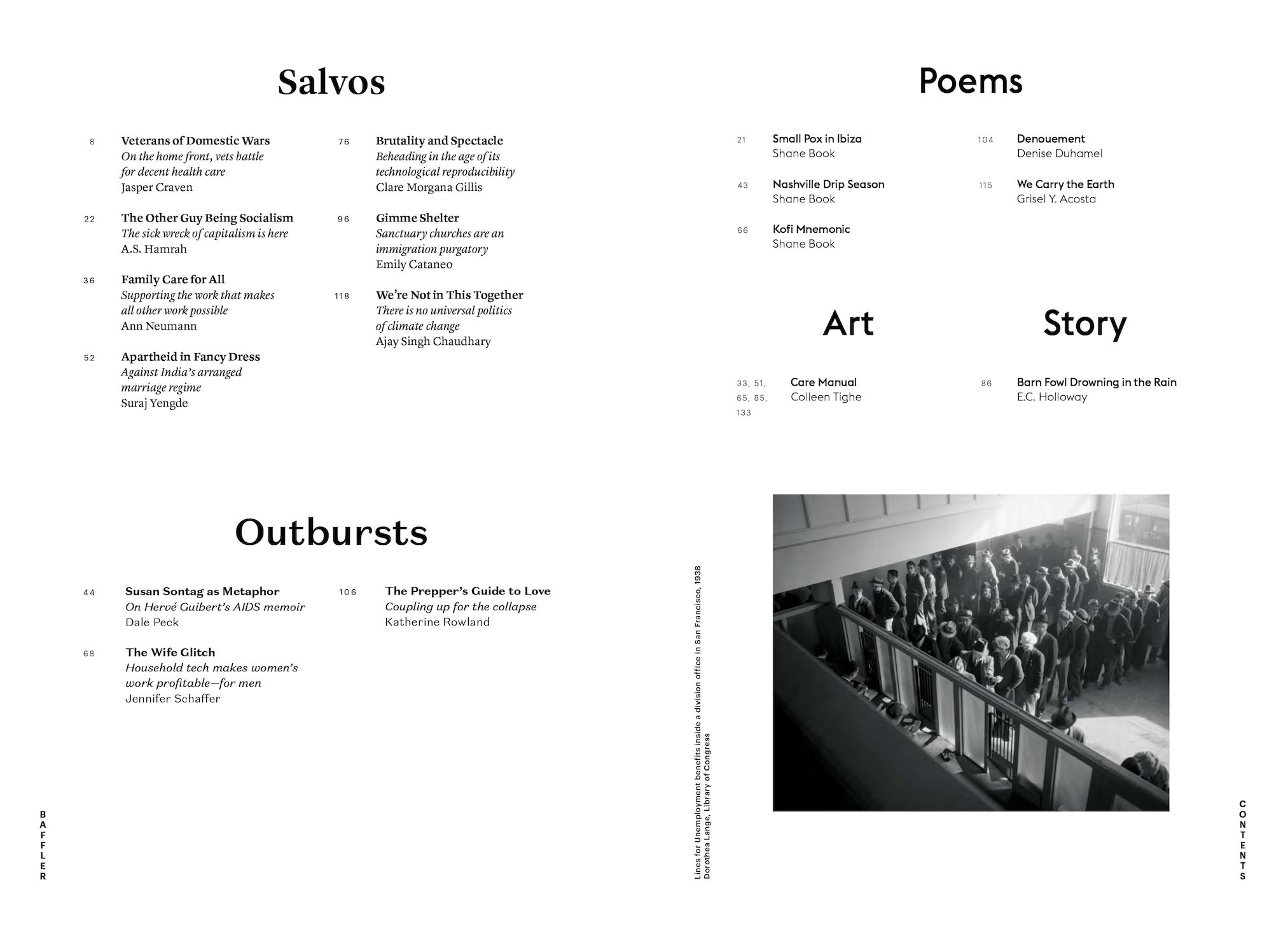Yes, the divisions that work against a culture fundamentally rooted in care and mutual aid are many and deep. In a deeply humane essay, Clare Morgana Gillis considers the loss of a dear friend, murdered by ISIS, and the popular narratives around such beheadings, finding “even as the image of beheadings seeped into our culture and art, it only misled us; its brutality fed into an American willingness to see themselves only as innocent victims, and to tune out the words of protest about our bombings, and to ignore visual clues, such as the orange jumpsuits, about their historical grievances.” Emily Cataneo delves into the long history of fugitives finding sanctuary in churches, from medieval Europe to the present-day United States, and interviews some of the immigrants currently taking shelter against their deportation orders. And Ajay Singh Chaudhary reminds us that, much as we might like to believe that the science is both neutral and irrefutable, there is no universal politics of climate change.