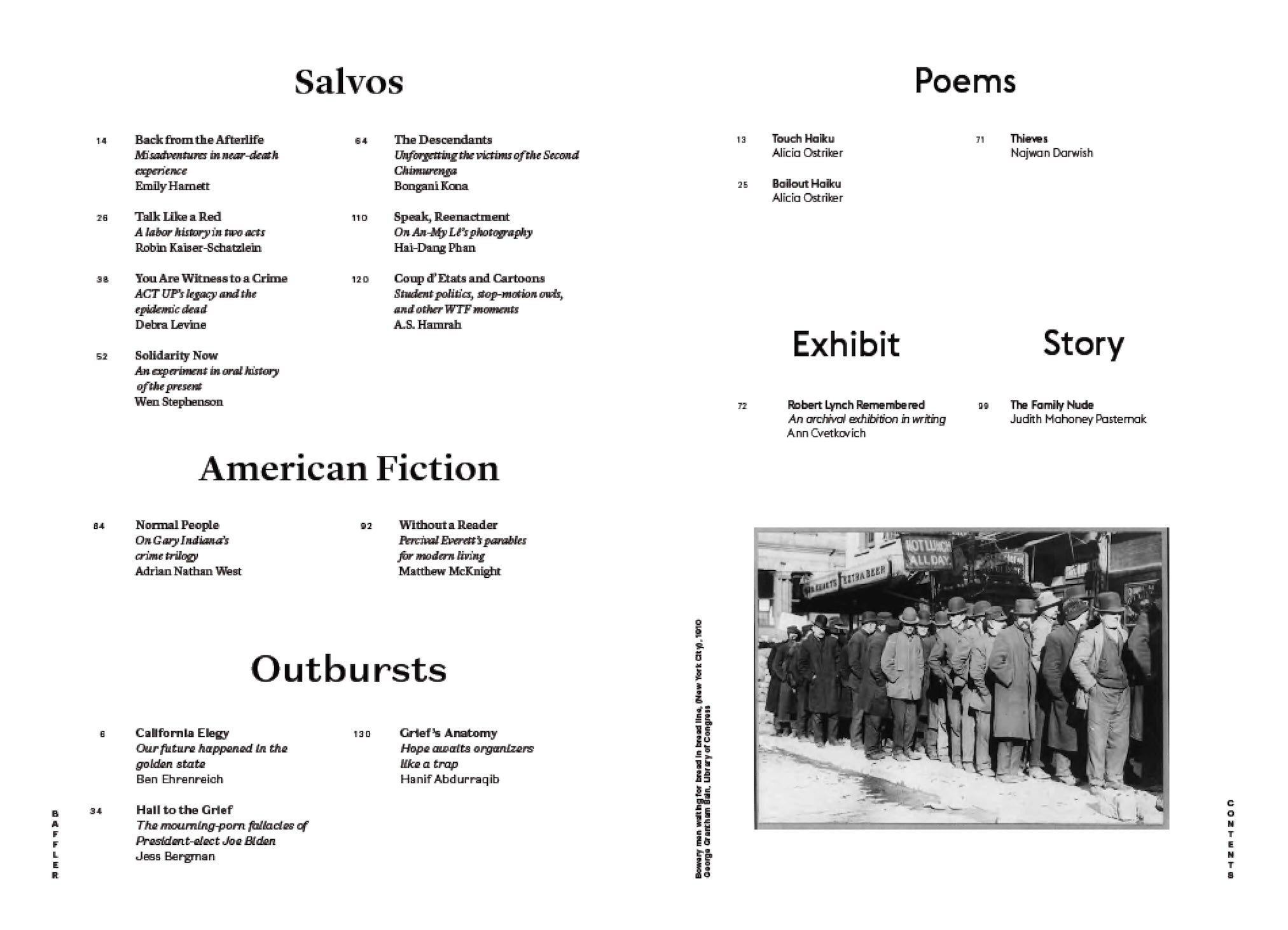 Charon, the ferryman of the dead, is more like an Uber driver than a salaried employee. And his rates, in the Covid era, are surging. Now our desperate video chats with the hospitalized dying are coins in their mouths—the psychopomp’s fare. Our wits crazed with grief, we still have to find a way to survive this depression and Depression, to make ends meet. This issue of The Baffler, no. 55, has arrived too soon—it is too soon to take a full accounting of those who are gone. But the waves of the dead are arriving on the shores of the underworld, and someone has to balance the books.