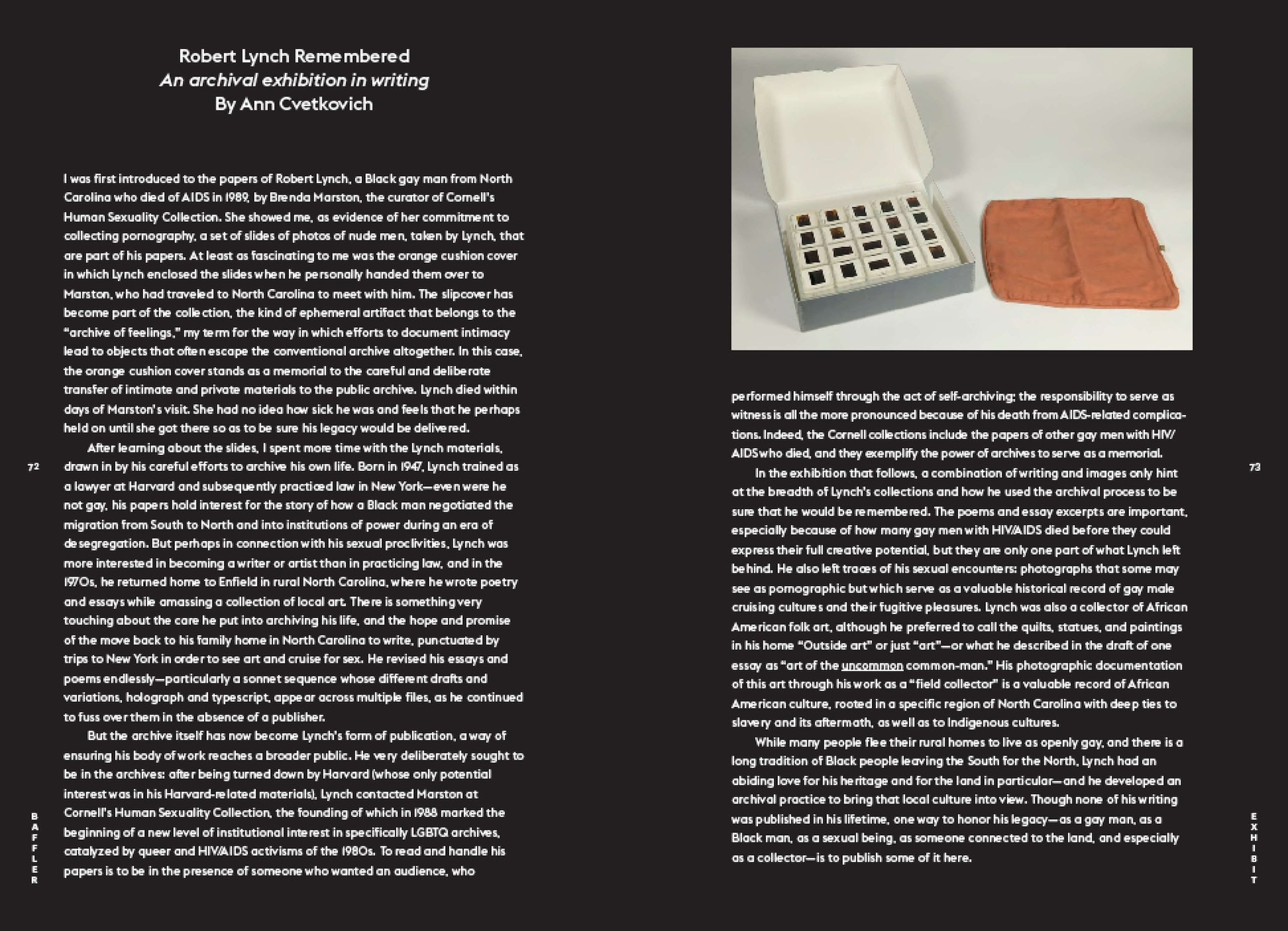 We can be thankful that the dead, at times, leave instructions. In Debra Levine’s “You are Witness to a Crime,” the life of ACT UP activist and artist Ray Navarro is revisited with militancy, and his memory serves to remind us of Mark Lowe Fisher’s injunction to “bury me furiously”—to pay Charon’s fare with political might and rage aimed at those with the titles to govern but not the decency. If there are parallels and non-parallels between HIV/AIDS and Covid-19, they are to be found in Levine’s writing, as well as in the efforts of our exhibition artist and essayist Ann Cvetkovich, who gathers the life-work of gay artist Robert Lynch into what she calls an “archive of feelings.” Hai Dang Phan, meanwhile, studies the photography of An-My Lê, much of it concerned with curious American reenactments of the Vietnam War, whose history is personal for the photographer. “In Lê’s silent American scenes,” Phan discovers, “the work of mourning is ongoing—as is the work of cultivation and recreation, protest and celebration.”