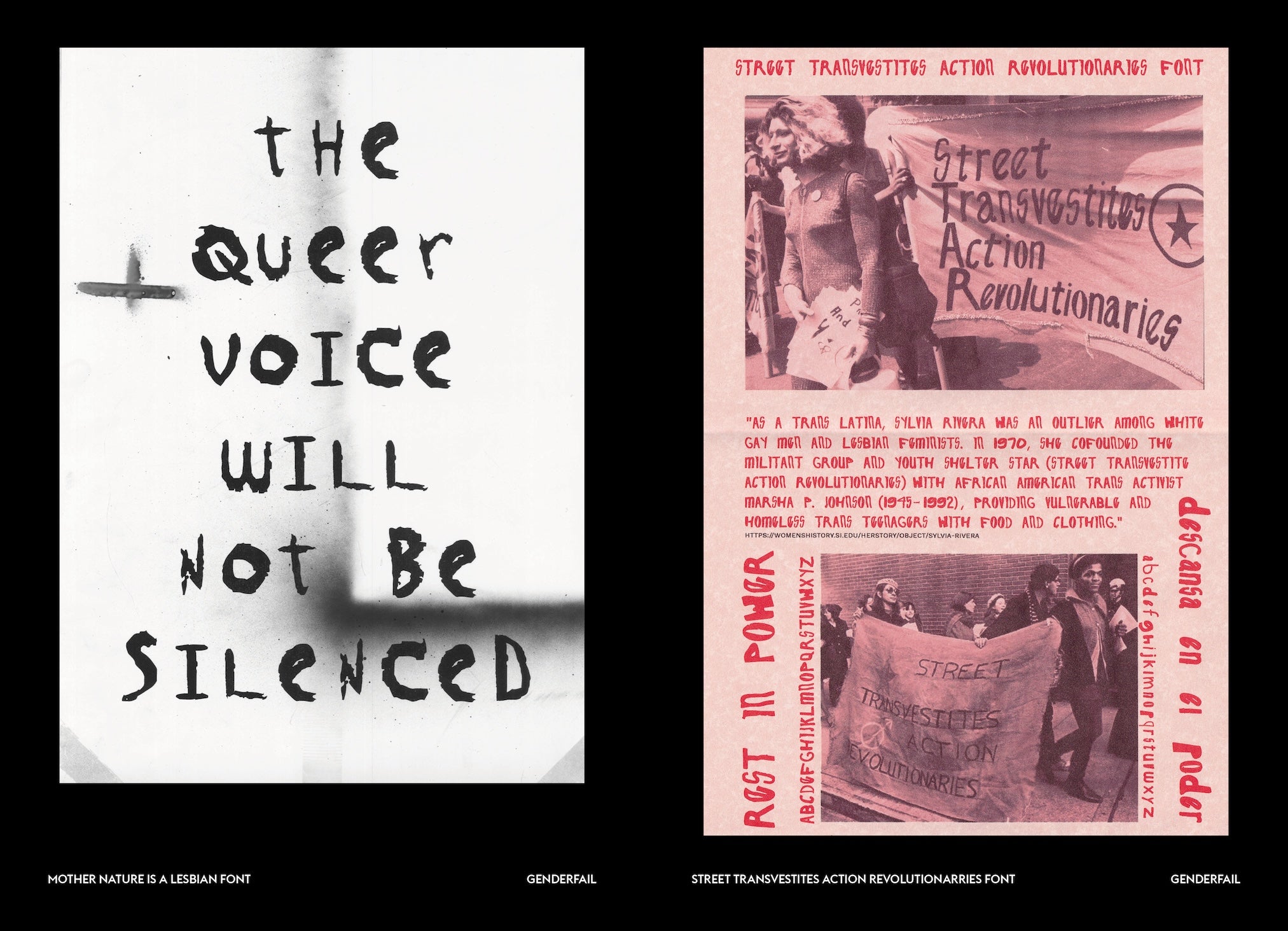 In the same vein, exhibit artist GenderFail contributes typefaces in homage to the historic STAR and ACT UP movements and the activists of today’s “Say Their Name,” memorializing black Americans murdered by police in an act of cross-group solidarity. And Lina Mounzer, in “Going Beyond the Veil,” raises her objections against ‘aib, a Lebanese euphemism for the regime of shaming that places women in an impossible public and private bind. Looking to our shared ecological world, Sami Emory questions the fate of German forests “co-opted by artists, historians, Nazis, politicians across the spectrum, and scientists.”