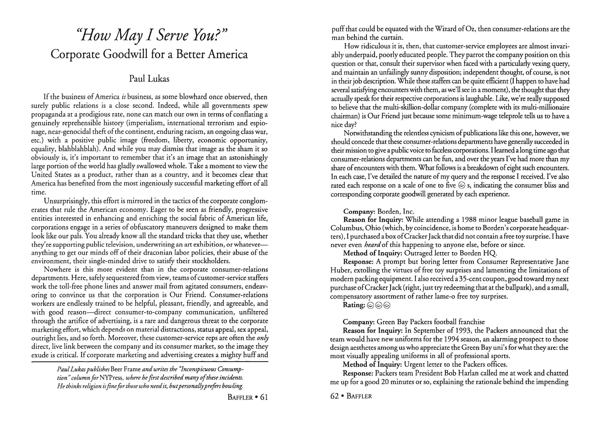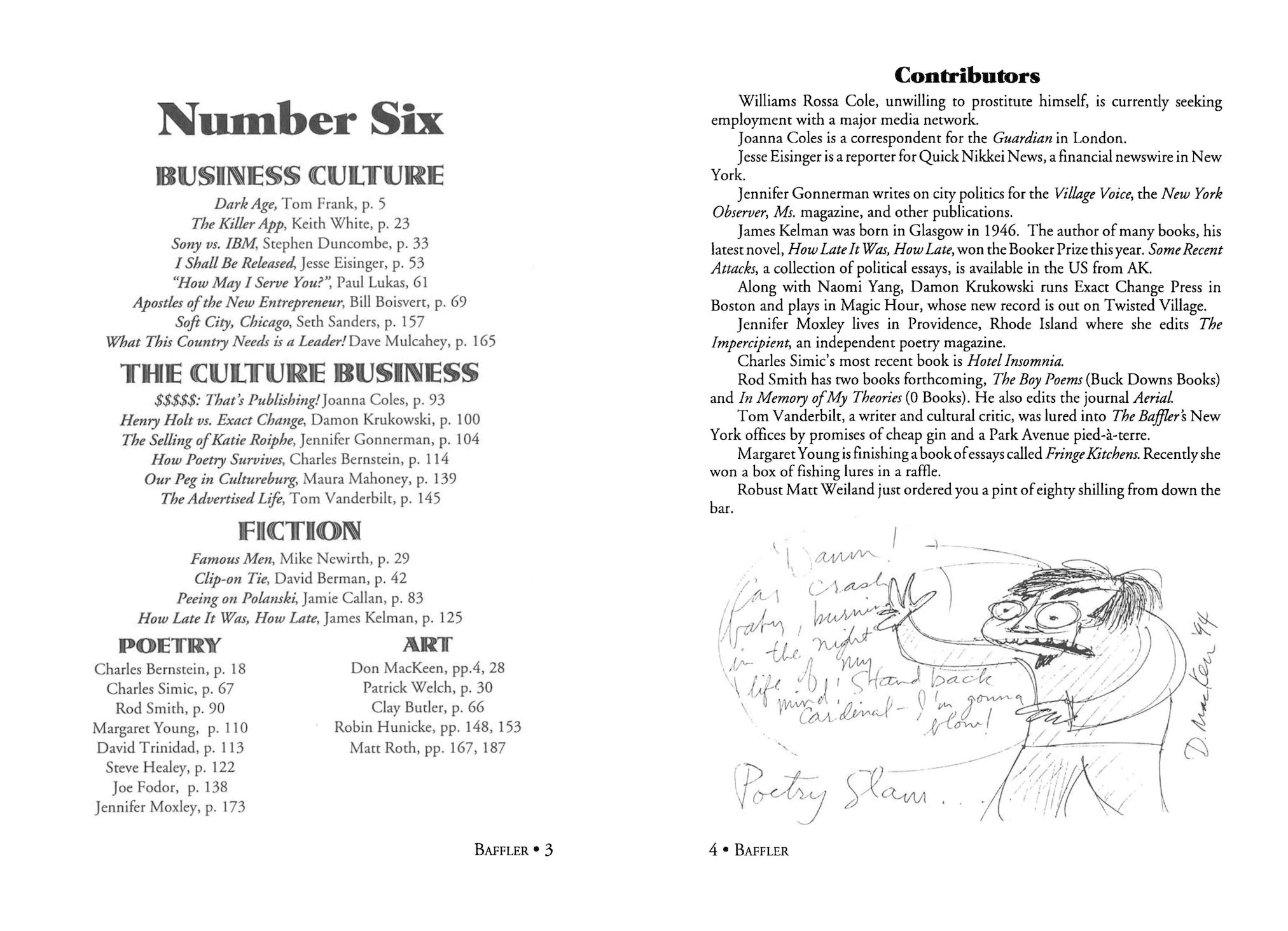Thomas Frank’s “Why Johnny Can’t Dissent” is a once-in-a-generation lament that made punk rockers everywhere gasp at the futility of their attempts at rebellion. Meanwhile, Keith White turns his guns on Wired Magazine, Stephen Duncombe subjects himself to corporate edutainment, and Seth Sanders braves the theme-restaurant wasteland of Chicago’s River North. Joanna Coles describes the collapse of publishing while Charles Bernstein finds a few signs of life. Will Boisvert decodes the management theorists. Tom Vanderbilt bemoans the imperial arrogance of advertisers. David Berman recalls his time as a security guard at the Metropolitan Museum of Art.
