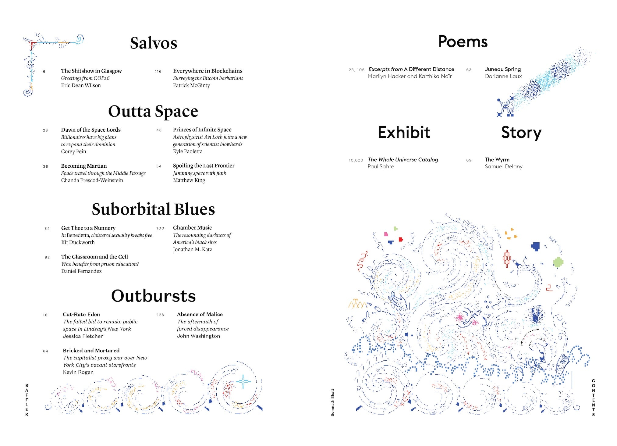 After a three-hour tour of the cosmos, Blue Origin owner Jeff Bezos, previously the world’s richest man, openly declares class war on earth, thanking “every Amazon employee and every Amazon customer because you guys paid for all this.” In “Dawn of the Space Lords,” Corey Pein describes such jaunts as characterizing a new era of “blown deadlines and spectacular failures” in the space race. Astrophysicist Chanda Prescod-Weinstein skewers these undemocratic pretensions in “Becoming Martian,” and considers, by way of the history of transatlantic slavery, which futures of space travel are preferable or even plausible. What isn’t plausible? Kyle Paoletta, inspects the spectacular claims of former Harvard professor Avi Loeb, who has spent four years trying to convince readers that the strange artifact called ‘Oumuamua is alien technology fueled by light from the sun. And Matthew King wonders whether this new space age will lift off at all, what with the ever-growing rings of junk clogging earth’s orbital lanes. “The brave new world unfolding before our eyes is no endless frontier of renewed exploration,” King writes, “but an uncontrolled experiment of epic proportions.”