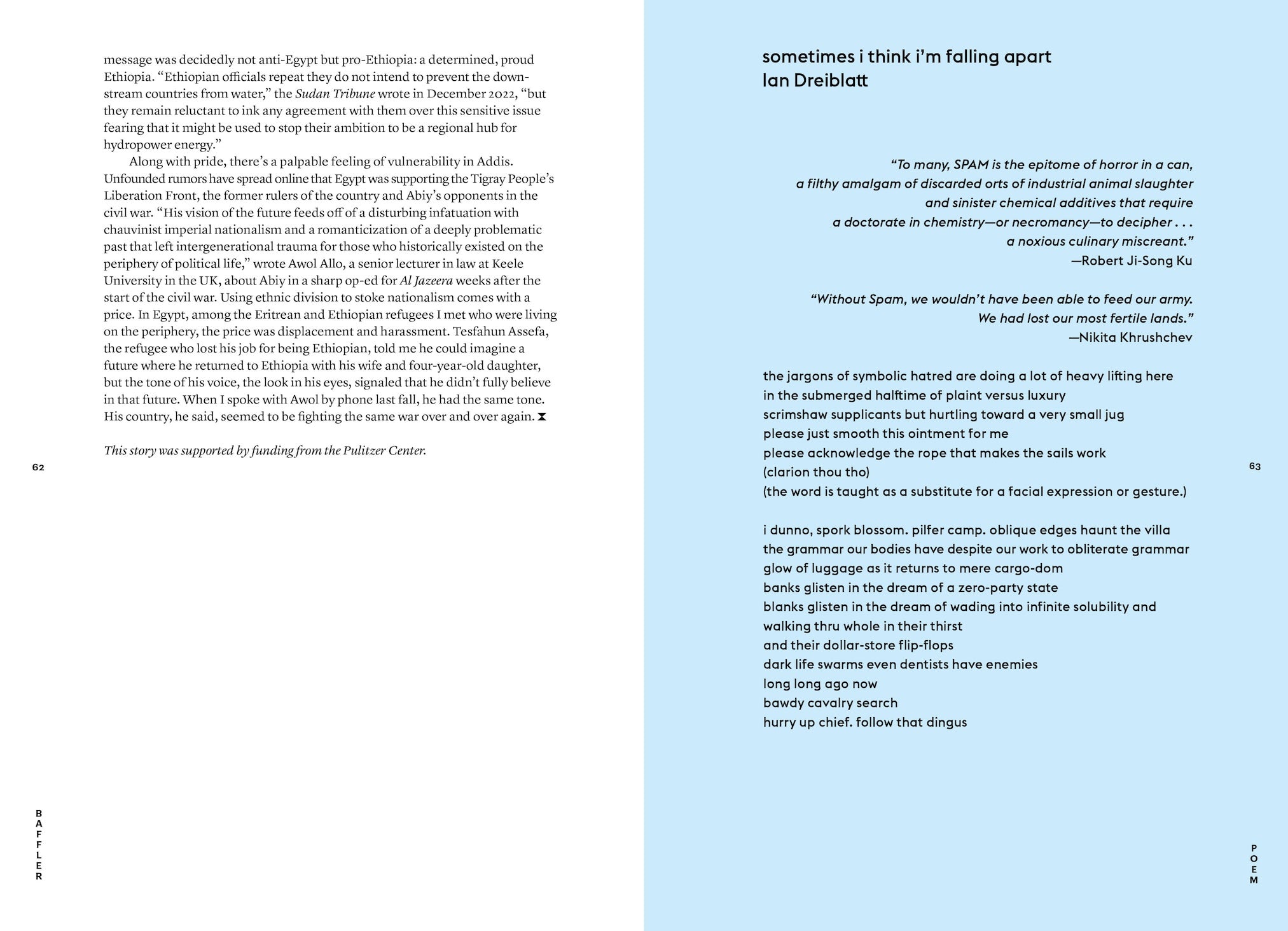 The weather cares little for lines on a map, regardless of how much money a nation pumps into border security and deportation proceedings. As rising temperatures make water ever scarcer, Ann Neumann examines Egypt and Ethiopia’s dueling claims over the Nile. Meanwhile, Thomas Geoghegan makes the argument for world government itself to confront climate change, with a half-utopic, half-utilitarian argument in favor of the European Union that reaches back to Kant’s musings on a perpetual peace. Which isn’t to suggest that forgetting about previous conflicts would be easy. As J.C. Hallman realizes on a trip taking in gun-themed graffiti, Kentucky Fried Chicken chains, and genocide memorials in the Armenian capital of Yerevan, at times the national interest is a desperately commemorative one, a furious insistence on not forgetting horrors past, nor dismissing them as fictions.
