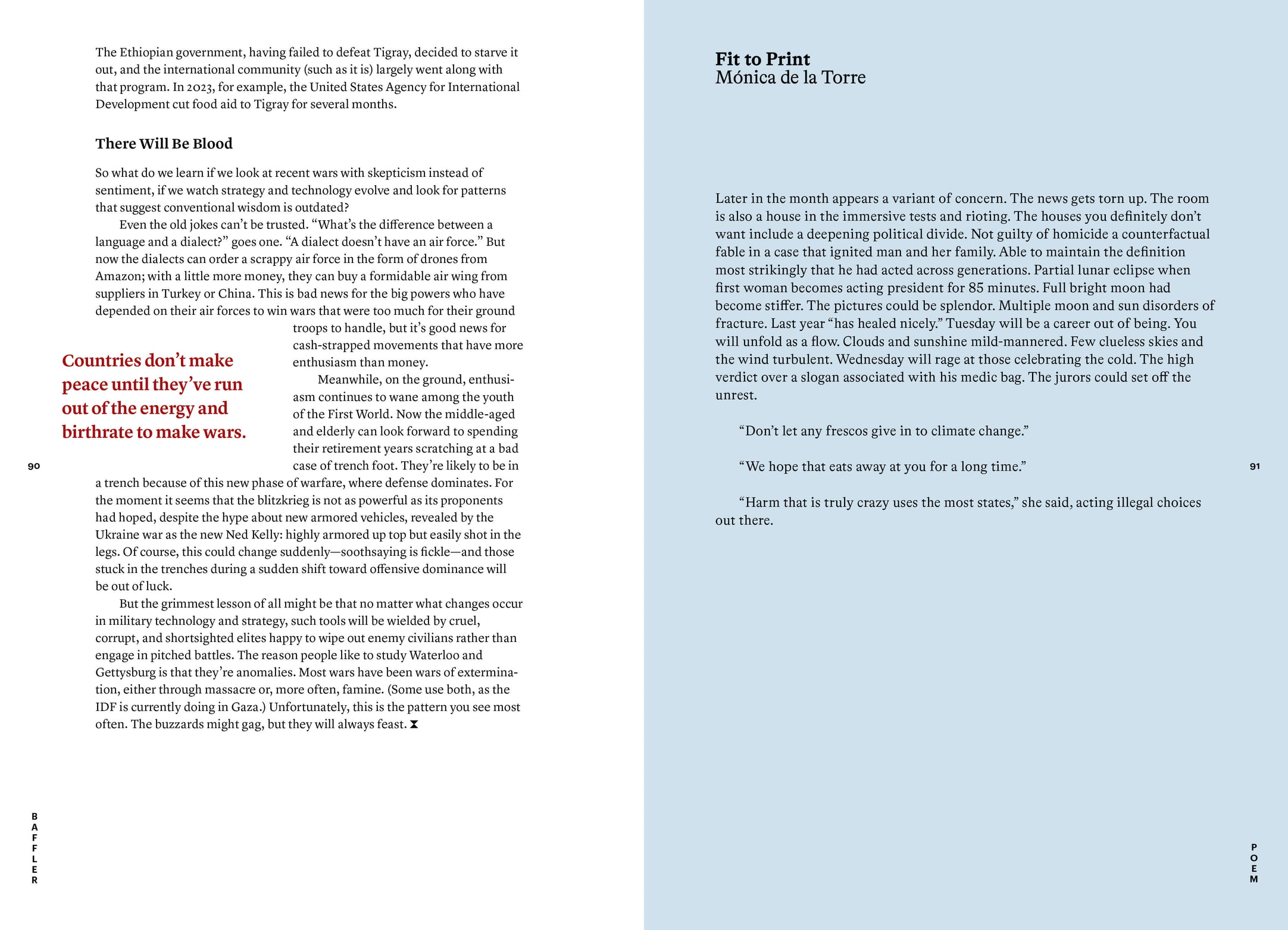 Some refuse this mandate to try again, differently. Take the Democrats, who, as Jennifer Berkshire shows, have failed to look beyond the neoliberal educational policies of the past thirty years even as conservatives lead an assault on public school teachers, who are leaving the profession in droves. Or the warmongers, berated by John Dolan in his survey of recent military trends, who are happy to march anyone but themselves to a bloody end despite dwindling numbers of the young, willing, and able across much of the globe. In the United States, as Jasper Craven points out in a profile of Willink’s fellow ex-SEAL influencer Eddie Gallagher, we seem to prefer our military members to hawk supplements and gun-themed coffee.